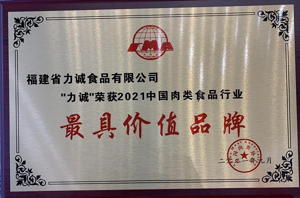 筆者從會(huì)上獲悉,總部位于晉江五里工業(yè)區(qū)的福建省力誠食品有限公司(以下簡(jiǎn)稱“力誠食品”),先后榮獲2021年度中國肉類食品安全信用體系建設(shè)示范項(xiàng)目信用體系示范企業(yè)、2021年中國肉類食品行業(yè)先進(jìn)企業(yè)以及2021年中國肉類食品行業(yè)最具價(jià)值品牌三大重量級(jí)獎(jiǎng)項(xiàng)。